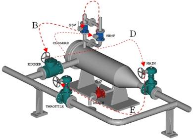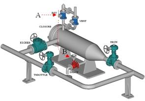 用鑰匙A關(guān)閉PSV的隔離,釋放鑰匙B。用鑰匙B開啟排放閥。